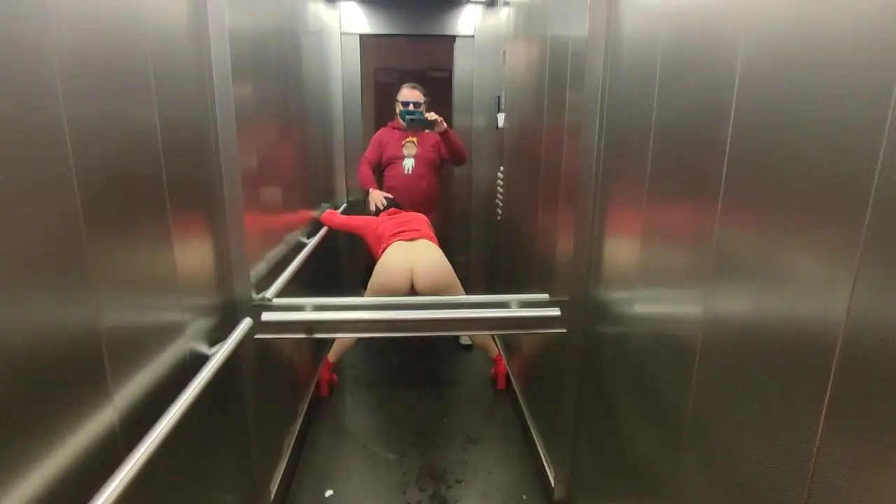 Deville - Neighbors get naughty in elevator: Dada Deville rides cock and sucks it too
