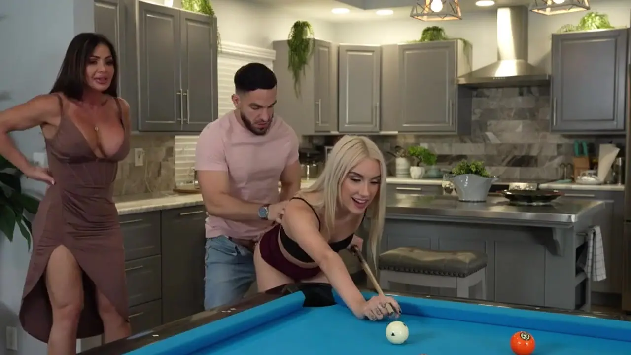 Peter Green comes home to find his stepmom Nina Dolci and his girlfriend waiting for him. The two women seduce him, sucking his cock and riding him hard. He fucks them both, giving each a creamy climax.