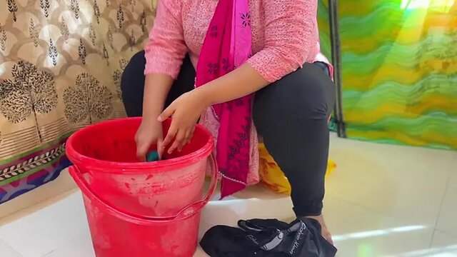 Big-assed Egyptian MILF gets turned on while washing her dress