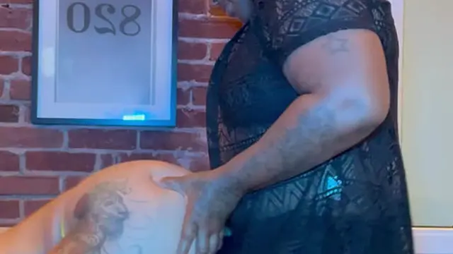 Cuffed Ebony wife getting back shots