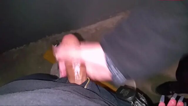 Small cock gets stroked and massaged in public parking garage