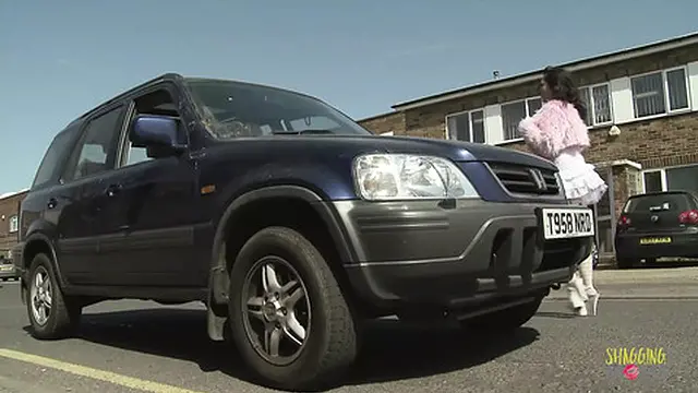 Slut holds a on a lover while blowing his penis